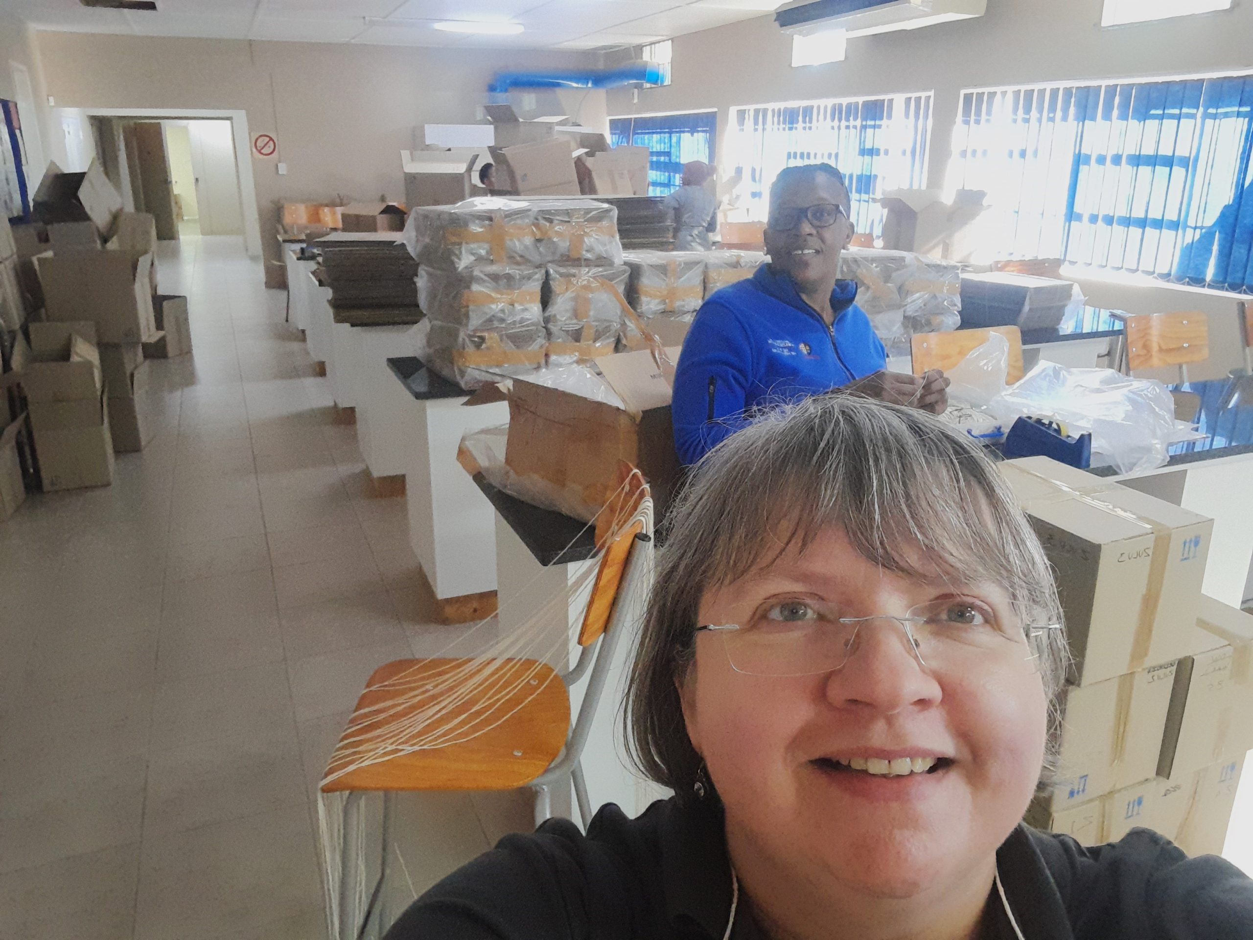By the next afternoon, about 90 boxes were packed and transported to the Pietermaritzburg campus of UKZN, with 11 remaining boxes scheduled for later delivery by UNIZULU staff. To avoid spreading any insects, the collection is currently being processed in a separate laboratory adjacent to the main herbarium. The decontamination process involves freezing and fumigation, followed by detailed visual inspections; then there is a process of database and name checks with final accessioning, all to be led by Ms. Tanya Mathe of the NSCF Hub team. This meticulous work is expected to take up to 18 months before the specimens are fully incorporated.